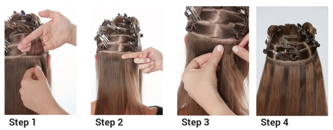 Πλεονεκτήματα τουφών που χρησιμοποιούμε >1. Μαλλιά χωρίς χημικές επεξεργασίες. Ενιαίο μήκος τούφας, ενιαίο πάχος τούφας ρίζα-άκρη.2. Αντέχει σε όλες τις καιρικές καταστάσεις !3. Τα μαλλιά έχουν όλα την ίδια φορά και δεν φαίνονται σαν κρεπαρισμένα στο αποτέλεσμα.4. Είναι 100% φυσική τρίχα.5. Η μέθοδος τοποθέτησης ( tape extensions ) γίνεται με ασφάλεια σε 4 βήματα όπως εμφανίζεται στη φωτο.
